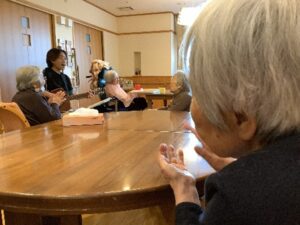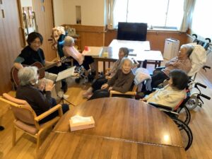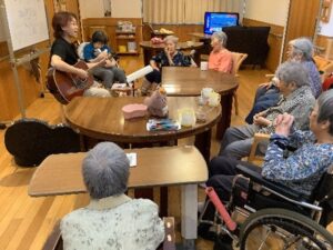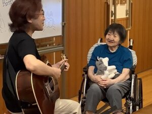 2025年10月30日 / 最終更新日時 : 2025年10月30日 watari_editer お知らせ 【はなしのぶ】~並木通り3.4丁目とある秋のひと時~ 「今日は久しぶりの皆の好きな演奏会をするぜ!!」 「芸術の秋、音楽の秋、ギター一本でそこはいつだって楽しい空間になっちまうぜ。」 「皆、歌が好きなのさ…。ほら、いい顔で聞いてくれてるだろ?」 「さあ、きょうも皆で歌うぜ。」 「俺のサウンドはレボリューションだ!」 秋のひと時に行われた、ギターが得意な職員によるワンマンライブの一コマでした!! Follow me! FacebookXBlueskyHatenaCopy