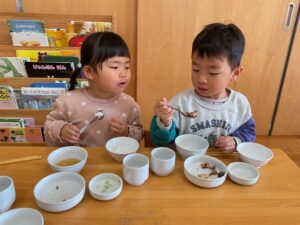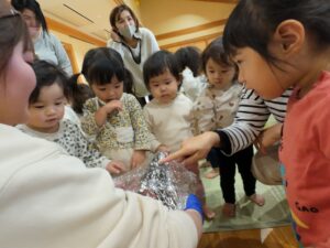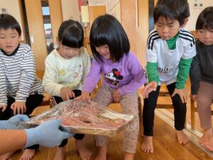 2025年11月13日 / 最終更新日時 : 2025年11月13日 watari_editer お知らせ 【さくらみなみ】魚を見る会 11/12 魚を見る会を行いました。 日ごろから給食で食べているお魚がどのようにして食卓に届くのかを実際に体験してもらう食育の一環です。 保育園でお世話になっている福島水産の方が二名来られて、子ども達の目の前で魚をさばいてくれました。 今日の魚は、「ぶり」です。 目で見て、匂いを嗅いで、触ってなど五感をフル活用させていた子ども達です。 お昼には、ぶりの西京焼きにして美味しくいただきました。 Follow me! FacebookXBlueskyHatenaCopy