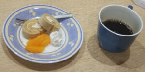 また、はなみずきにもサンタクロースがやってきて、ケーキとコーヒーのプレゼントを運んできてくれました。
